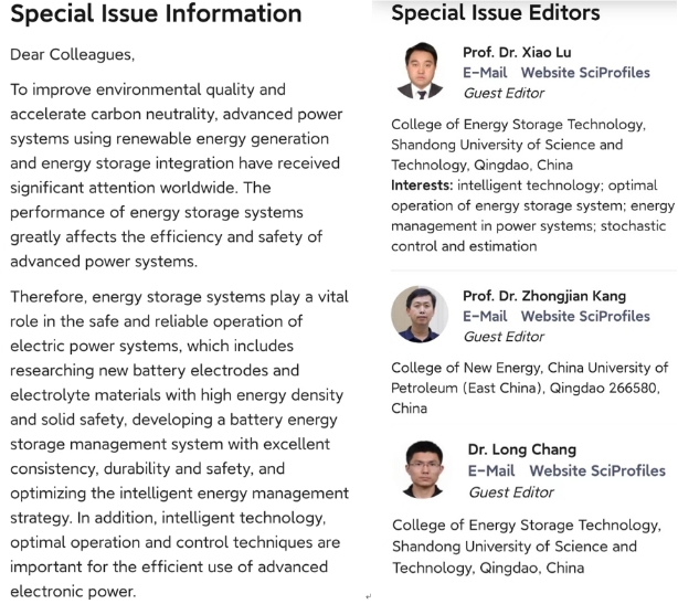 点击:近日,色情片 卢晓教授应国际期刊《Energies》杂志邀请,担任该刊物的客座编辑,负责稿件征集和同行评议等事宜。根据当前国际储能技术的研究热点并结合色情片 研究方向及卢晓教授的研究领域,开设了“Intelligent Technology, and Optimal Operation of Energy Storage System”主题,并在世界范围内向相关研究人员征集符合该主题的研究论文和综述。这将对进一步提升我校在储能技术、储能系统优化运行、智能控制技术等领域的国际影响力产生积极作用。