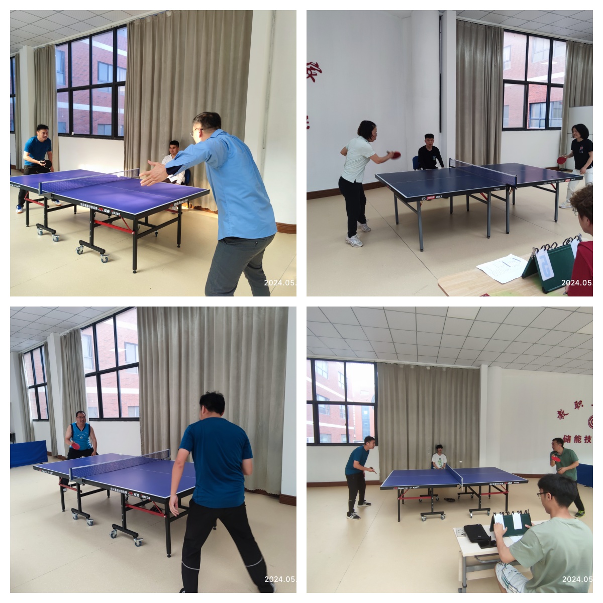 本次比赛设男子单打和女子单打项目,共有21名教职工报名参赛。根据报名情况分男子A、B组和女子A、B组,采用初赛三局两胜、决赛五局三胜制。比赛中,参赛选手攻守结合,敢打敢拼,旋转发球、直拍进攻、横拍防守,推、挡、削、扣,精湛的球技不时赢得观众的喝彩和掌声,展现了较高的竞技水平和昂扬向上的精神风貌。经过激烈角逐,陈辉、王翠苹分获女子组冠亚军,男子组冠亚军由付民、边志国夺得。