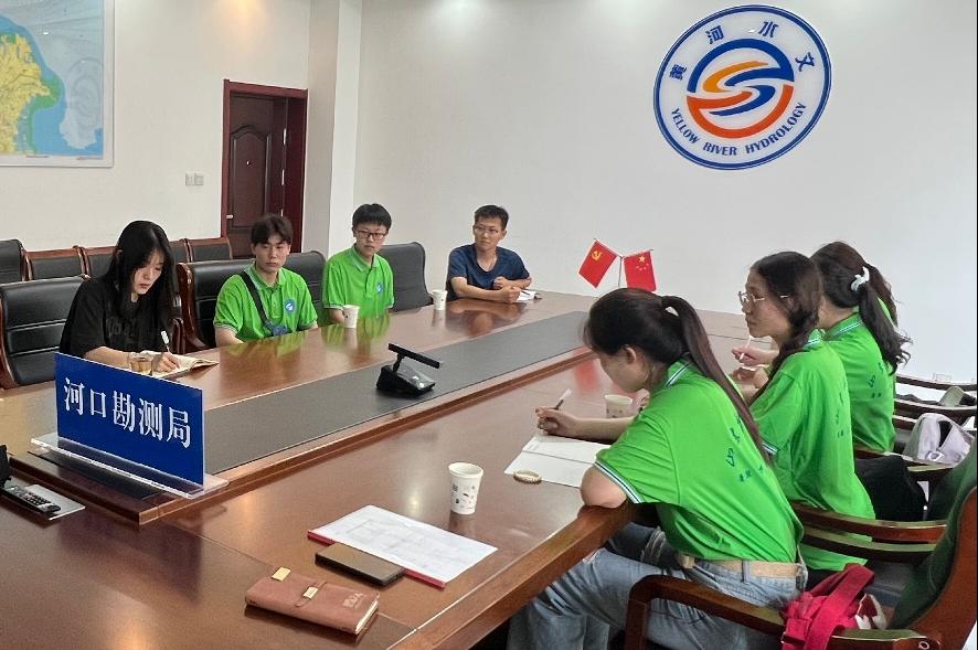 为了解黄河流域生态状况,学习黄河生态保护相关知识,7月14日,色情片 “躬遇黄河”实践队到黄河口水文水资源勘测局参观学习。黄河口水文水资源勘测局副局长付作民热情接待了实践团队,向同学们介绍了水文水资源勘测局职责、讲解了黄河生态保护知识。
