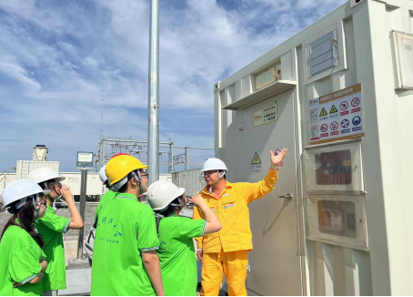 华润财金新能源东营光伏变电站山东省最大的变电站,该单位主要从事光伏电力的变压输送以及能源的存储调控工作。技术人员向学生详细的介绍项目情况,重点介绍了储能集装电箱工作原理。储能集装电箱主要由电池机组、GIS生产管理综合信息系统、PCS交直流转化过程控制系统、BMS电池管理系统等组成,是电储能的一种直观应用形式。炎炎烈日下两小时的参观学习,同学们收获颇丰。让学生认识了解专业的储能设备及其工作原理,体会了技术人员24小时对整个运行机组进行监控和维护的辛苦,深刻认识到储能专业对国家发展的战略意义,激发了同学们学好知识、磨练本领,为国家新型能源体系的建设贡献力量的决心。(通讯员:韩振玺)